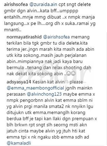 Rata-ratanya mempertikaikan tindakan Emma memadam gambar bersama Alvin biarpun sudah dijelaskan hubungan mereka sekadar kawan.