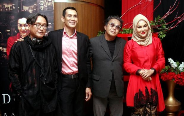 Barisan pelakon Dukun bersama pengarahnya, Dain Said (dua dari kanan).