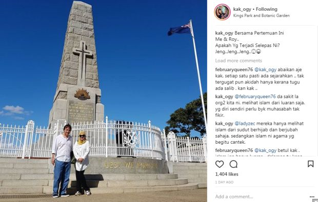TINDAKAN pelakon Fauziah Ahmad Daud yang memuat naik gambar berlatar belakangkan tanda salib ketika bergambar di Kings Park and Botanic Garden, Perth Australia pada Selasa lalu mengundang kecaman dalam kalangan pengikutnya di Instagram.