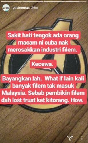 Sebelum ini, pihak Golden Screen Cinemas (GSC) pernah meluahkan kekecewaan terhadap golongan yang suka merakam dalam panggung wayang dan memuat naik di laman sosial.