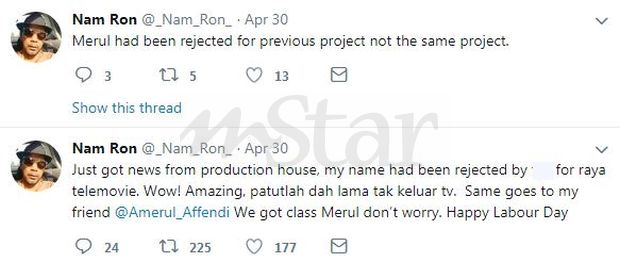 "Jangan risau Merul, kita ada kelas. Merul pernah ditolak beberapa projek tapi bukan projek yang sama," kata Nam Ron.