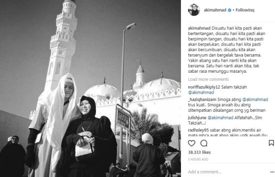 Dalam pada itu, Akim membalas salah satu komen mengakui agak sukar bagi dirinya untuk melalui hari-hari tanpa seorang insan bernama ibu.