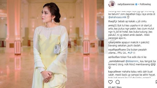 Hampir 1,000 komen yang rata-ratanya memberi kata-kata negatif membanjiri foto pelakon tersebut sejak pagi Isnin.