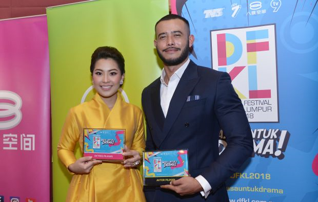 Janna dan Zul Ariffin bersama trofi kemenangan masing-masing.