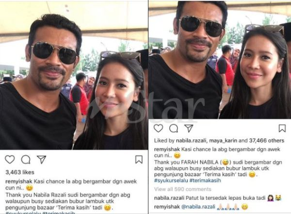 GARA-GARA tersilap meletakkan nama pada kapsyen foto bersama Farah Nabila laman sosial Instagram Remy Ishak dibanjiri komen netizen.