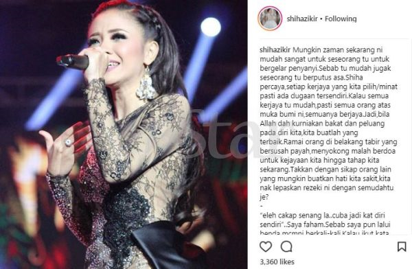 "Saya percaya,setiap kerjaya yang kita pilih pasti ada dugaan tersendiri. Kalau semua kerjaya tu mudah, pasti semua orang atas muka bumi ni, semuanya berjaya," ujarnya di Instagram.