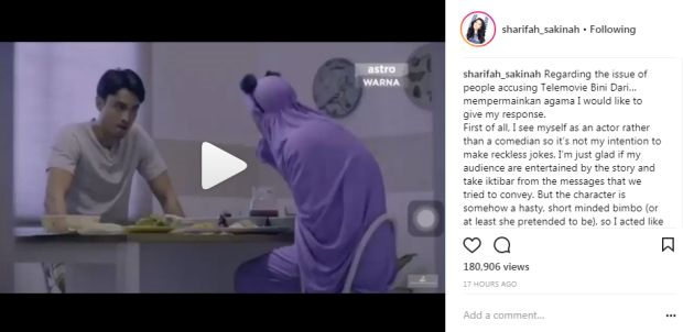 "Kepada mereka yang sesuka hati kecam drama itu dan menganggap kami mempersendakan agama, tolong tonton cerita keseluruhannya sehingga habis dan serap mesej yang ingin disampaikan.