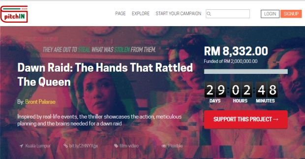 Orang ramai yang ingin menyumbang kepada dana filem itu boleh melayari www.reward.pitchin.my/projects/dawn-raid-the-hands-that-rattled-the-queen.
