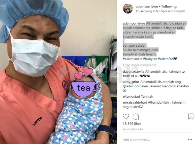 "Assalammulaikum, tahniah tuan Adam Corrie Lee. Moga baby dan ibu bertambah sihat," tulis beberapa pengikutnya.