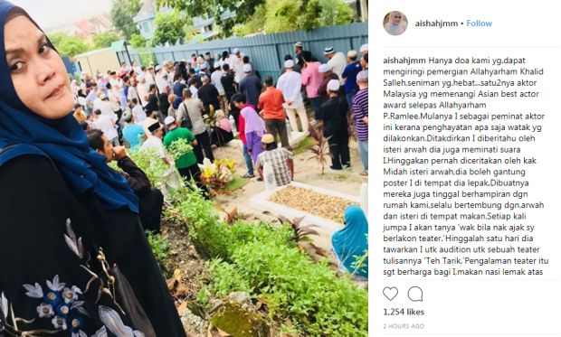 Menerusi perkongsian berlainan di Instagram, Aishah memuat naik gambarnya bersama Khalid ketika menziarahi pelakon itu pada hari raya Aidilfitri lalu.