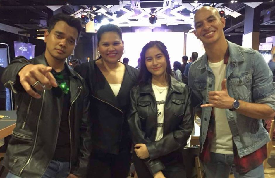 Alif Satar (dari kiri) dan Sherry sebagai pengacara utama manakala Eyra Hazali dan Harris Annuar ialah pengacara program ‘Live Plus Big Stage’.
