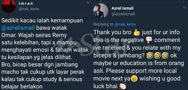 Dalam pada itu, ditanya tentang lakonan Azrel yang membawakan watak Omar dalam filem Pulang dikritik netizen, Roy berkata, pengambaran filem tersebut dilakukan dua tahun lalu.
