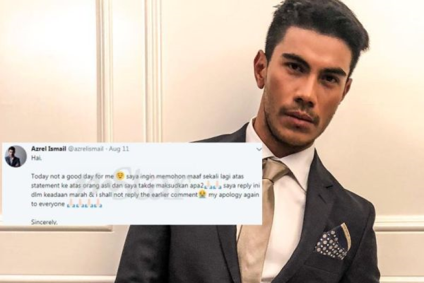 PELAKON Azrel Ismail membuat permohonan maaf atas keterlanjuran kata menyentuh kaum Orang Asli ketika membalas komen netizen di laman sosialnya baru-baru ini.