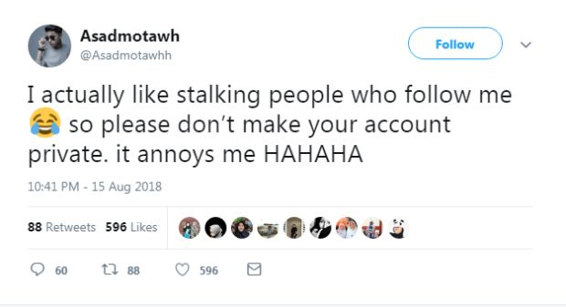 As'ad, 17, berkata, ia menjengkelkan dirinya apabila akaun yang ingin dilawatinya diletakkan dalam mod privasi dan meminta agar pengikutnya tidak berbuat demikian.