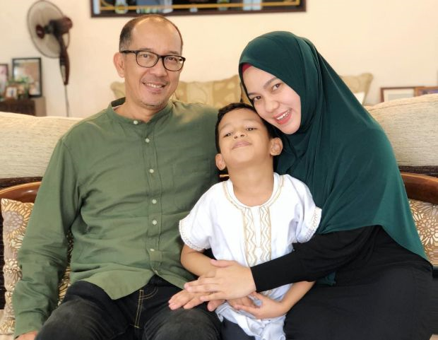 Farah bersama suami, Raja Iskandar Raja Muktharuddin dan anaknya, Ebrahim Owais.