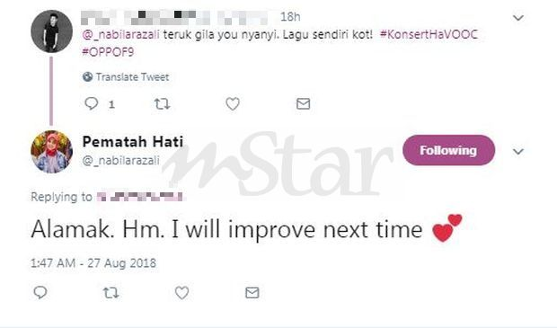 "Saya terima semua komen dengan hati terbuka dan berjanji buat lebih baik lagi pada masa akan datang.