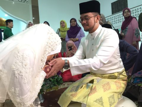 Pernikahan pasangan itu disaksikan bapa saudara pengantin perempuan, Mohd Hasnan dan rakan bapanya, Ustaz Mansur Saman.