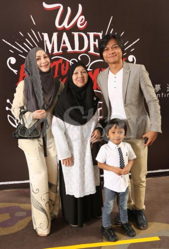Jue bersama suami, Bayu, ibu dan anaknya di malam meraikan kejayaan filem Hantu Kak Limah, baru-baru ini.