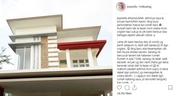 Sementara itu Joy yang turut memuat naik foto kediaman itu memberitahu rumah berkenaan mempunyai tujuh bilik.