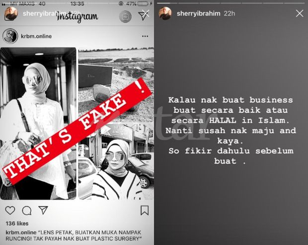 Sherry berkongsi rasa kurang senang apabila gambarnya digunakan oleh satu peniaga atas talian.