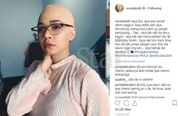 Bagaimanapun, menerusi kapsyen Nora memberitahu dia sedang melakonkan watak seorang wanita yang menderita kanser rahim.