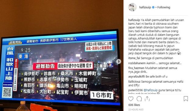 PENYANYI Hafiz Suip yang sedang bercuti di Jepun berkongsi detik mencemaskan ketika berdepan bencana taufan di negara itu.