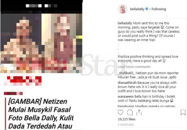 Sebelum ini, sebuah portal hiburan ada menulis artikel mengenai kekeliruan netizen tentang pemakaian Bella yang dilihat agak seksi.