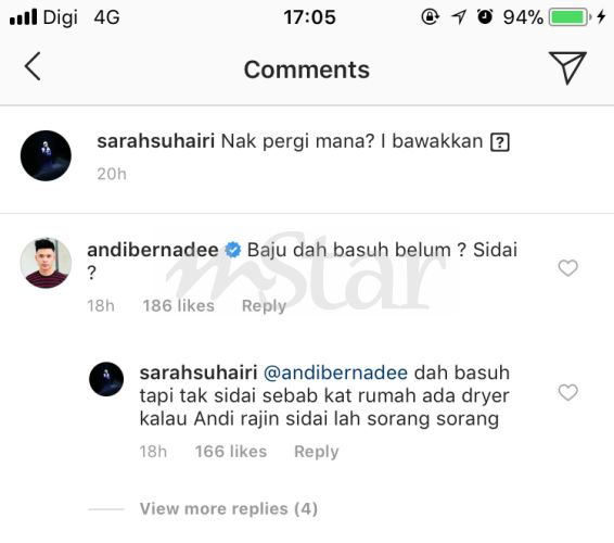 "Saya dan Andi tidak ada sebarang hubungan istimewa pun. Berbalas-balas komen tu perkara biasa sahaja.