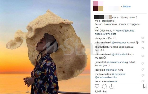 Netizen menyunting foto topi yang dipakai Neelofa menjadi keropok ikan.