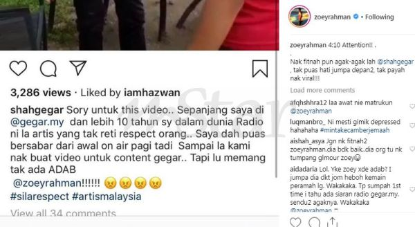 SEJAK malam tadi pengguna media sosial dikejutkan dengan video perang mulut pelakon Zoey Rahman dan penyampai Gegar FM iaitu Shah Mohammad apabila kedua-dua selebriti berkenaan berkongsi rasa tidak puas hati masing-masing.