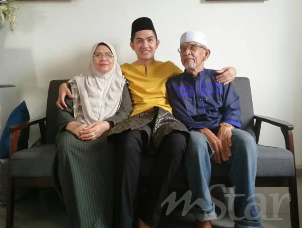 Ridzuan (tengah) bersama ibu dan ayahnya.