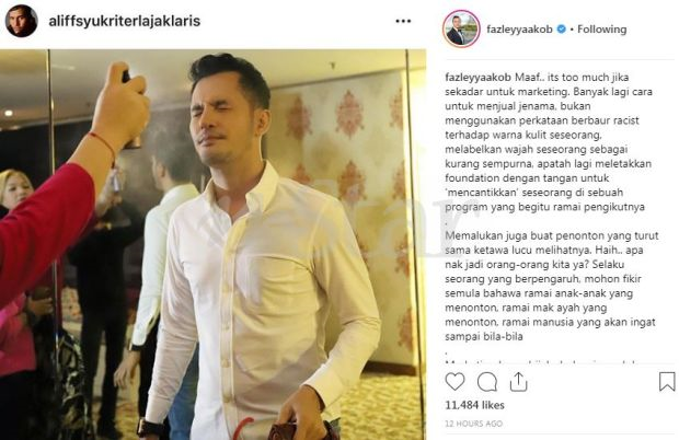 "Melabelkan wajah seseorang sebagai kurang sempurna, apatah lagi meletakkan bedak asas dengan tangan untuk 'mencantikkan' seseorang di sebuah program yang begitu ramai pengikutnya," katanya.