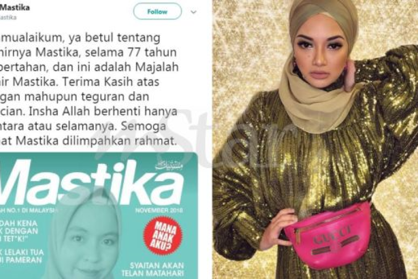 MAJALAH tertua di Malaysia iaitu Majalah Mastika akhirnya bakal menghentikan pengeluaran pada edisi terakhir November 2018 selepas 77 tahun beroperasi. Rata-rata netizen meluahkan rasa sedih kerana menganggap majalah terbitan Utusan Karya Sdn Bhd itu mempunyai nilai sentimental tersendiri dalam kehidupan mereka. Malah, pengacara sensasi Neelofa turut mengucapkan terima kasih kepada majalah berkenaan yang memberi banyak kenangan kepadanya ketika menuntut di asrama. "Zaman duduk di asrama boleh dikatakan buku peneman di hujung minggu. Terima kasih untuk segala memori indah Majalah Mastika!," tulisnya di Twitter. Mastika umum edisi terakhir dapat reaksi Neelofa. Pengumuman yang dibuat majalah itu di laman sosial @MajalahMastika telah mendapat lebih empat ribu ulang kicau (retweet) dan seratus komen. "Assalamualaikum, ya betul tentang berakhirnya Mastika, selama 77 tahun kami bertahan, dan ini adalah Majalah terakhir Mastika. "Terima Kasih atas sokongan mahupun teguran dan kebencian. Insha Allah berhenti hanya sementara atau selamanya. Semoga peminat Mastika dilimpahkan rahmat," tulisnya. Netizen mengucapkan selamat tinggal dan berkongsi kenangan manis mereka dengan majalah tersebut. Majalah Mastika merupakan sebuah majalah berbahasa Melayu yang diterbitkan secara bulanan. Ia merupakan sebuah majalah yang bercorak kisah misteri, seram, masyarakat dan pengetahuan umum. Mastika majalah tertua di Malaysia. Majalah Mastika mula dikeluarkan pada 1 Jun 1941 dan sepanjang penerbitannya, ia telah dikemudi dan diperkemas oleh beberapa orang tokoh. Tokoh-tokoh tersebut merangkumi Abdul Rahim Kajai sebagai pengarang pertama, kemudian diikuti oleh Tan Sri Abdul Samad Ismail, Munir Ghazali, A. Samad Said dan Zainol Fakir. Majalah ini mendapat sambutan masyarakat telah memegang rekod jualan tertinggi selama sepuluh tahun berturut-turut. Mastika memegang rekod sebagai majalah tertua dan edarannya pernah mencecah 300,000 naskhah sebulan. Pada mulanya Mastika diterbitkan lebih bercorak pendidikan namun selepas ia diambil alih oleh Zainol Fakir pada pertengahan 1990-an, ia diubah kepada kandungan berunsur seram.