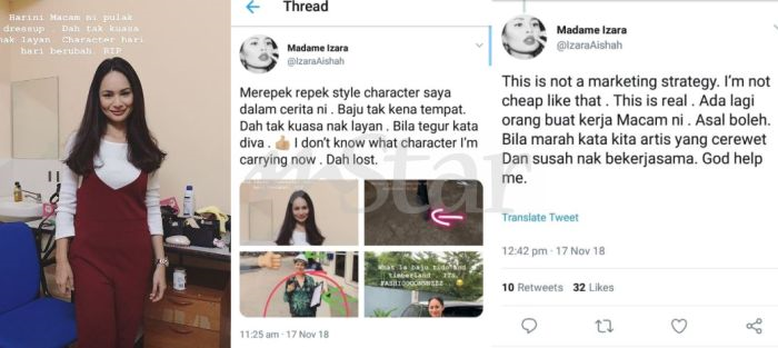 PELAKON Izara Aishah meluahkan rasa kecewa terhadap pakaian yang disediakan oleh pihak produksi untuk penggambaran sebuah drama.