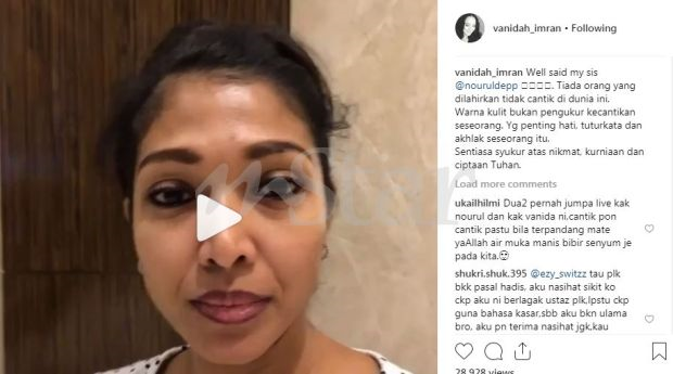 Vanida turut memuat naik video Nourul yang mengatakan untuk mengenali seseorang itu bukan dari segi warna kulit tetapi hati budi.