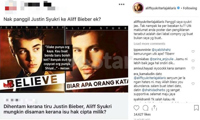 "Panggil saya Syukri je... tak nampak ke perbezaan tu? Untuk maklumat anda poster dan pengiklanan tersebut adalah dari label company yang buat, bukan saya yang buat," tulisnya di Instagram.