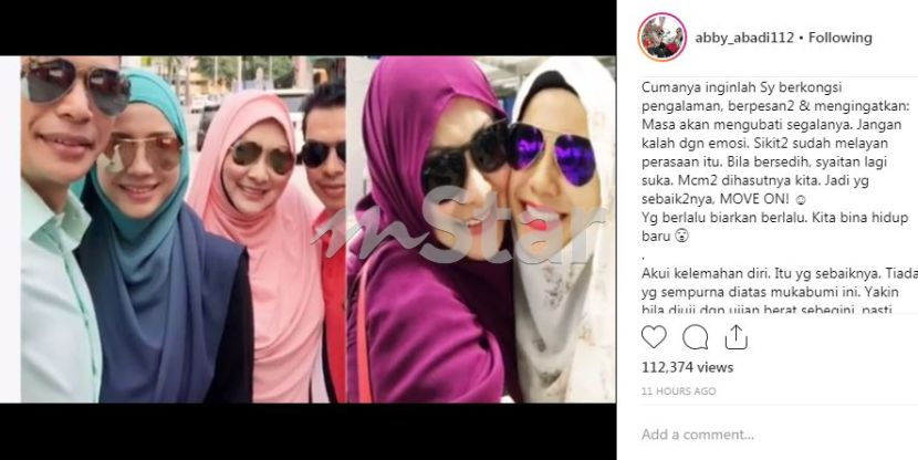 Abby memberitahu perkara itu selepas menerima banyak pertanyaan bagaimana dia boleh menjalinkan hubungan baik dengan Norman Hakim dan Memey Suhaiza selepas apa yang berlaku antara mereka.