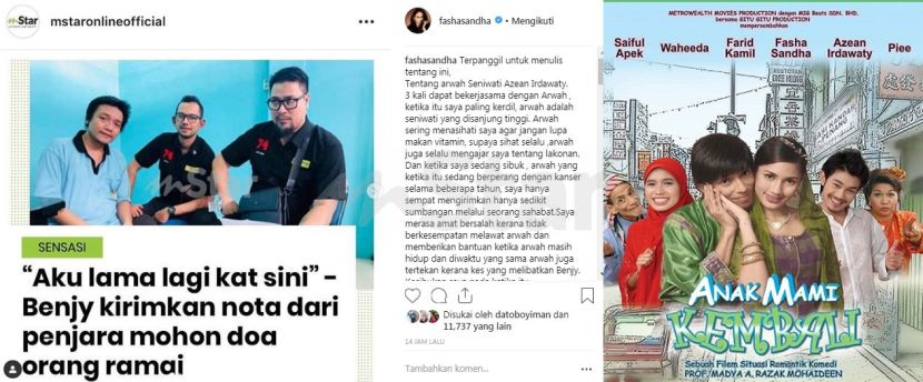 Fasha mengimbau kenangan itu selepas membaca berita berkaitan anak Allahyarham iaitu pelakon Benjy yang memerlukan bantuan kerana mengalami penyakit asma kronik selain berpotensi untuk terkena batuk kering atau tuberculosis (TB).