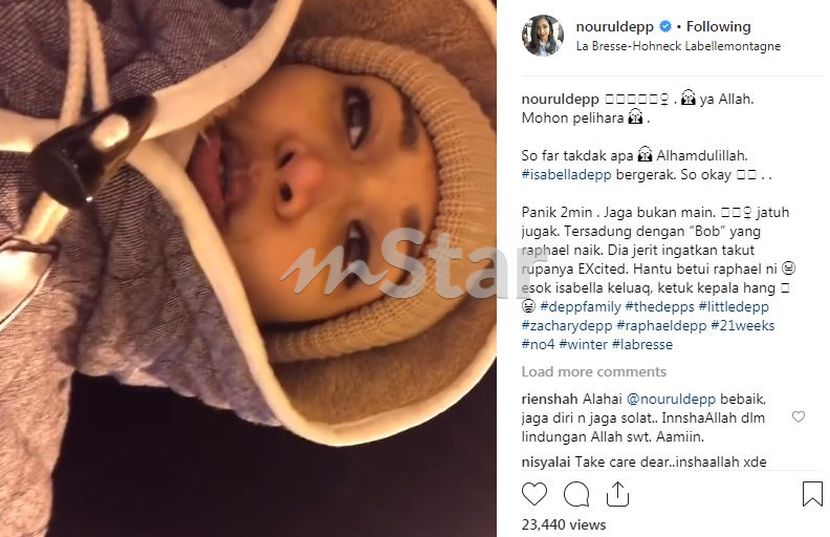"Ya Allah. Mohon pelihara. Buat masa sekarang, tak ada apa-apa. Alhamdulillah. #Isabelladepp bergerak.