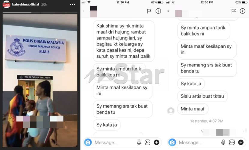 Individu tersebut memohon maaf selepas Shima membuat laporan polis.