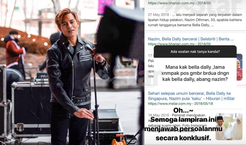 Menerusi pertanyaan di Instastory, Nazim memuat naik soalan netizen bertanyakan di mana Bella Dally dan mengapa mereka berdua sudah jarang bergambar bersama.