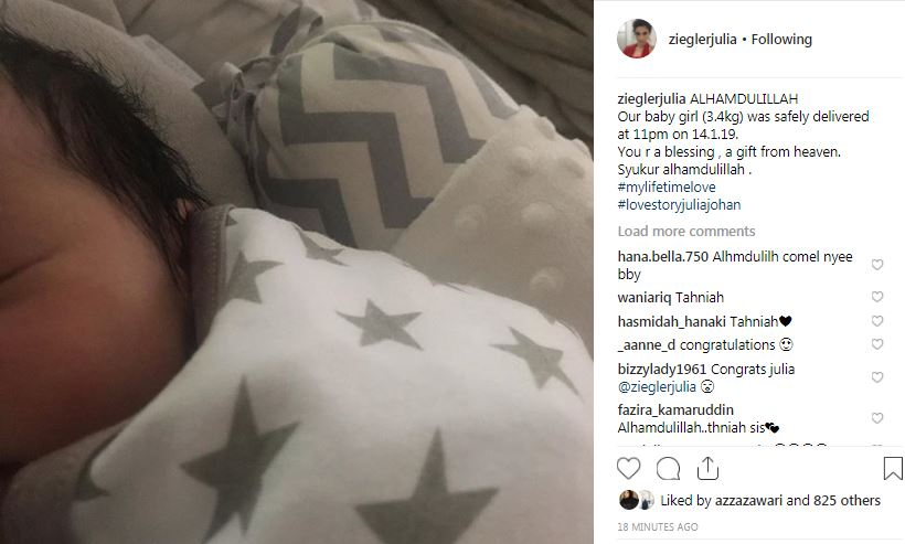Julia selamat melahirkan anak pertama pada Isnin lalu.