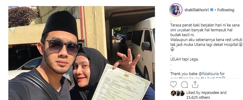 Shakilla dan Fizi baru mengambil sijil pernikahan mereka.