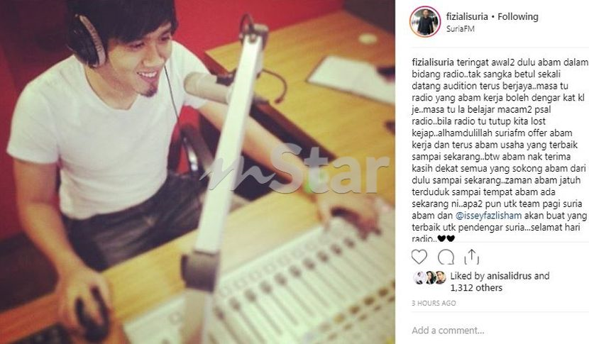 Dalam pada itu, Fizi bersyukur apabila Suria FM menawarkan dia untuk bekerja dan berterima kasih kepada semua yang menyokongnya dari dulu sehingga kini.