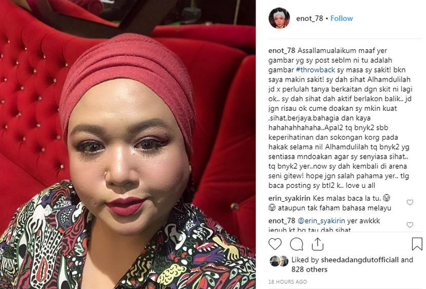TINDAKAN pelakon dan pelawak Enot berkongsi foto ketika dirinya sedang menderita kanser usus tiga tahun lalu di Instagram miliknya mengundang salah faham apabila ramai menyangka dia sedang sakit.