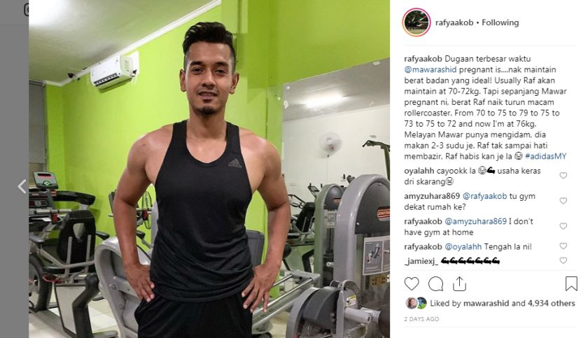 "Melayan Mawar punya mengidam, dia makan dua tiga sudu sahaja. Raf tak sampai hati membazir, Raf habiskan je la," katanya di Instagram.