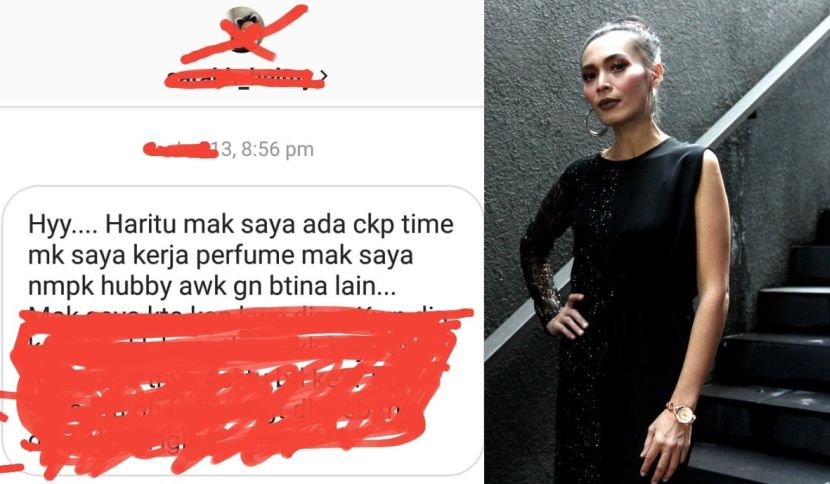 "Haritu mak saya ada cakap masa mak saya kerja perfume (jurujual minyak wangi) mak saya nampak hubby awak dengan wanita lain," tulis mesej berkenaan.