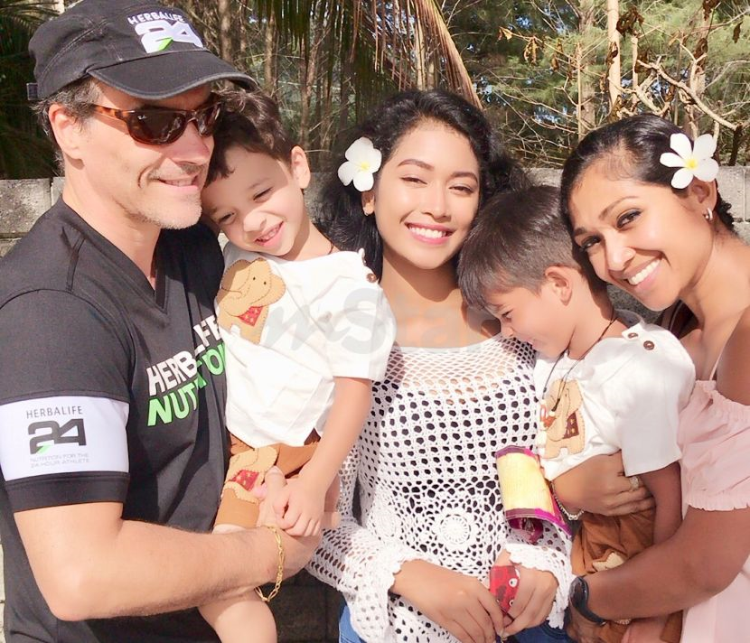 Ayu (tiga, kiri) bersama ibunya dan bapa tiri Eric Daniel serta adik-adiknya.