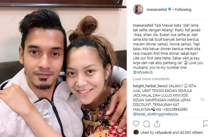 Pemilik nama Wan Mawar Shaputri Wan Abdul Rashid ini turut memuat naik gambar swafoto bersama suaminya di laman Instagram.