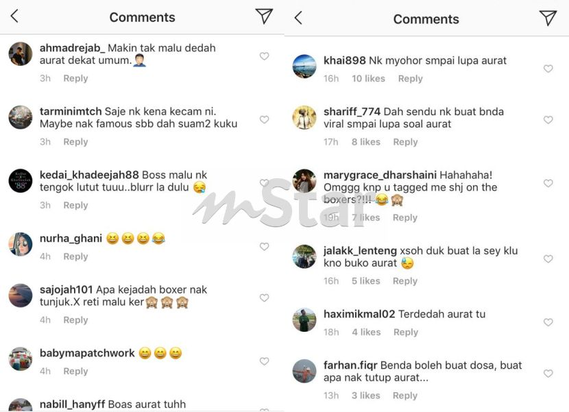 "Sejujurnya sebelum post tu saya tak perasan pun benda tu. Niat saya cuma nak tunjuk boxer itu sama dengan Azhan Rani punya.